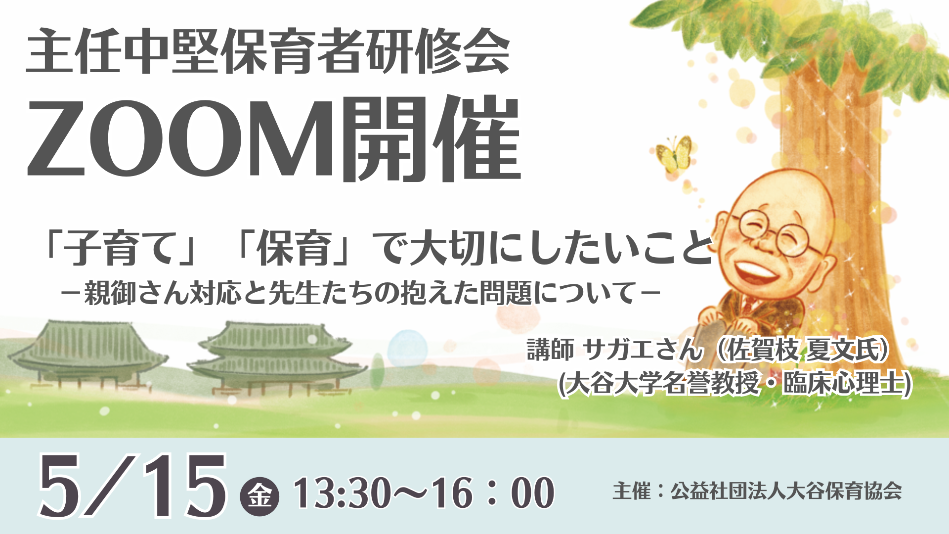 講師には、大谷大学名誉教授であり、高倉幼稚園 前園長の佐賀枝夏文先生をお招きいたします。